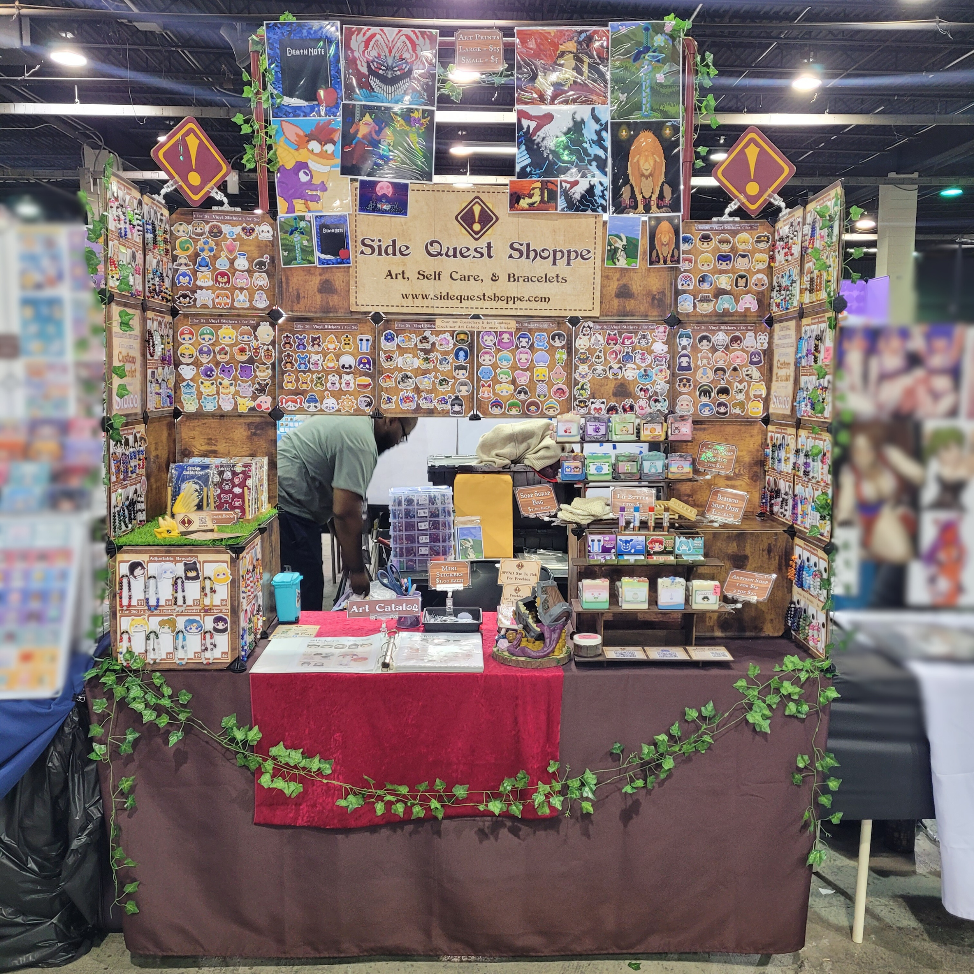 At your event we would offer our Artisan Soaps, Bead Bracelets, Water Resistant Vinyl Stickers, Art Prints, & Sticker Books